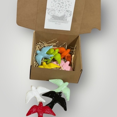 Andorinha tradicional em barro com acabamento pintado à mão que proporciona resistência, brilho e impermeabilidade. Por ser uma peça 100% artesanal, podem ocorrer variações de cor, e textura, o que garante a exclusividade de cada andorinha.