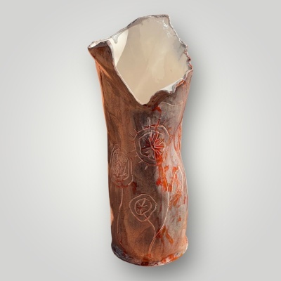 Jarra em cerâmica de autor, de grande carácter artístico e decorativo. É uma peça única e muito original, artística com a variação e irregularidades próprias por ser produzida manualmente.